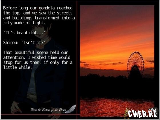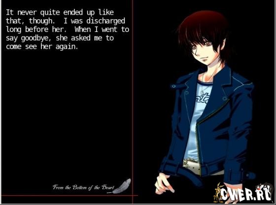 Очень трогательная история о любви, преданности, страхе… Новелла не интерактивная, она не требует от игрока делать выбор по ходу повествования. История короткая, люди, хорошо знающие английский язык, смогут прочитать примерно за пять минут.