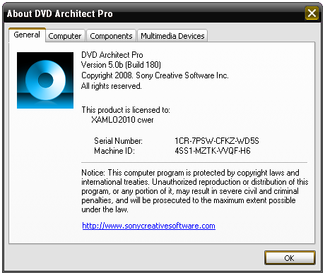 Скачать программу Sony DVD Architect Pro 5.0b Build 180 (88,93 МБ):
