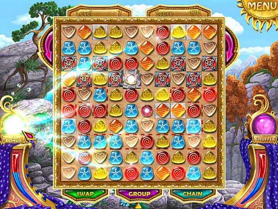 Интересная match-3 игра со множеством препятствий, бонусов и дополнительных задач. Действие разворачивается на изумительной земле волшебства, и его детальная карта вместе с расслабляющим музыкальным фоном создают настоящую атмосферу сказки. Игрок должен помочь старенькому волшебнику пересечь Волшебную Землю.