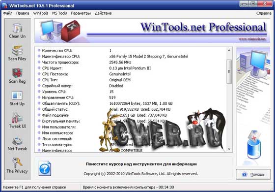 WinTools.net Professional – набор инструментов для оптимизации операционной системы Windows. В состав программы входят компоненты для полного удаления нежелательных программ и «мертвых» ссылок реестра, а также для контроля процессов, настройки системы, интернет-соединений и интерфейса. Кроме того, имеются утилиты для надежного хранения конфиденциальной информации. Работает на платформах Windows 2000, 2003, XP и Vista.