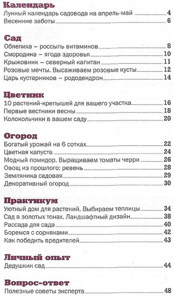 Спецвыпуск предлагает сотню практичных советов, которые помогут превратить любую дачу в цветущий и плодоносящий сад, вырастить рассаду, цветы, деревья и ягоды, бороться с сорняками, выбрать теплицу, а также ландшафтный дизайн от читателей.