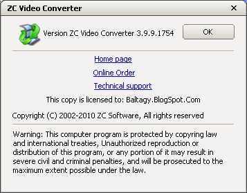 ZC Video Converter — программа, предназначенная для переконвертирования видеофайлов из одного формата в другой. Программа характеризуется высокой скоростью конвертации и огромным количеством поддерживаемых форматов включая AVI, MPEG, MPEG 1, MPEG 2, MPEG 4, VCD, DVD, SVCD, RMVB, RM WMV, MOV, DIVX..... А также поддержка портативных устройств: Ipod, iPhone, мобильного телефона, Microsoft Zune, Apple TV, ITouch, Pocket PC, Sony PSP ECT.