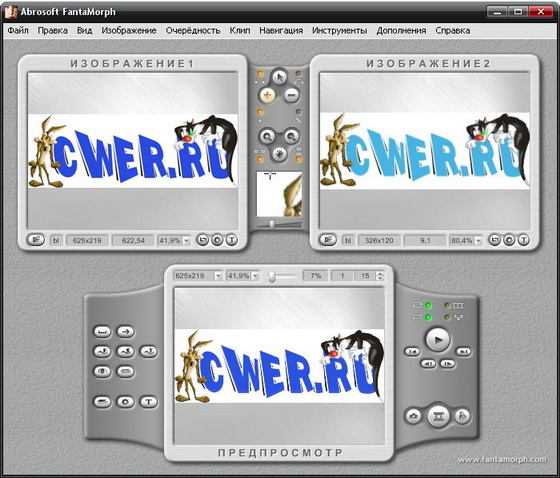 FantaMorph - программа для создания анимированных изображений с эффектом морфинга и различных деформаций изображений. С помощью этой программы вы сможете создавать удивительные анимированные изображения, с плавным переходом от одной фотографии к другой с применением различных эффектов и деформаций. Программа имеет большое количество предустановок эффекта, поддерживает импорт видео, а также имеет широкие возможности по настройке и улучшению качества изображений. Вы сможете обрезать, поворачивать, регулировать цвет, добавлять различные надписи и потрясающие эффекты с помощью встроенных инструментов для редактирования без необходимости в обращении за помощью к сторонним приложениям. Программой поддерживается большое количество графических форматов, включая BMP, JPEG, TIFF, PNG, GIF, TGA, PCX и другие. Результат вы сможете экспортировать в AVI формат, анимированный GIF, флэш, формат экранной заставки, автономный EXE файл и в другие форматы.