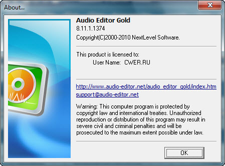 Скачать программу Audio Editor Gold 8.11.1.1374 (14,42 МБ):