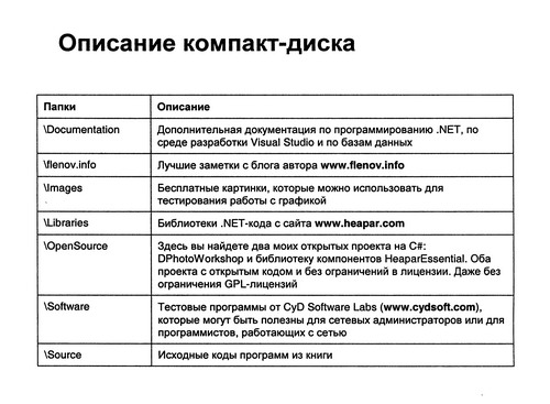 Компакт-диск содержит примеры программ, дополнительную справочную информацию, а также готовые компоненты, тестовые программы и изображения.