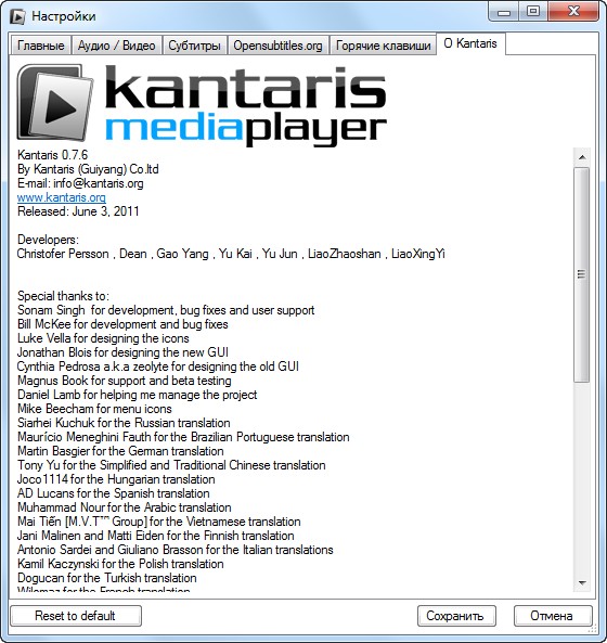 Скачать программу Kantaris Media Player 0.7.6 (16,75 МБ):