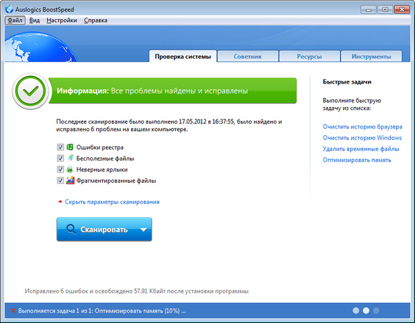 Ваш компьютер будет работать, как новый! Программа очистит Ваш компьютер от системного "мусора", исправит ошибки реестра, дефрагментирует диски и оптимизирует настройки Windows.