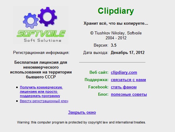 Скачать программу Clipdiary 3.50 (2,60 МБ):