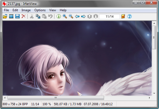 IrfanView - компактная и в то же время мощная программа для просмотра и конвертации графических файлов с продвинутыми возможностями, поддерживающая множество форматов графики, есть опции редактирования. Кроме работы с графическими файлами, IrfanView понимает многие аудио и видеоформаты; вдобавок, возможности программы можно значительно расширить за счет плагинов, хотя и без них IrfanView обладает множеством достоинств: в программе имеются базовые средства обработки графики, можно конвертировать файлы из одного формата в другой, делать скриншоты с экрана и заставки для рабочего стола, есть режимы слайдшоу и thumbnail (показ уменьшенных копий), а также функция вытаскивания иконок из *.exe и *.dll файлов. Кроме этого, явным плюсом программы является ее небольшой размер.