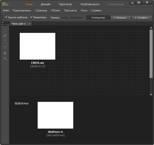 Adobe Muse – визуальный конструктор сайтов, функционирующий по принципу «отображение внесённых изменений в реальном времени». Таким образом, разработчику не требуется открывать HTML-код сайта - панель редактирования позволяет работать с веб-страницей, как с изображением. Очевидно, что такой подход ориентирован на создание среды разработки, доступной пользователю без специального образования.