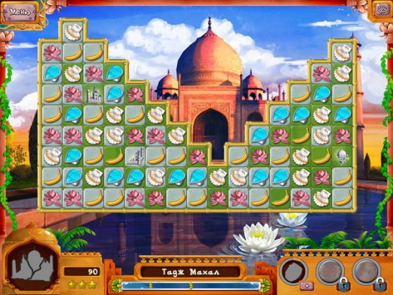 Отправляясь в Индию, вы не предполагали, что ваше путешествие окажется богатым не только на новые впечатления. Вы нашли древние артефакты, ценность которых сложно преувеличить. Амулет солнца, королевское кольцо с сапфиром и легендарные цветочные духи... И ведь это только первые из находок! На игровом поле составляйте цепочки из одинаковых фигурок, чтобы освободить части артефактов и составить их воедино. Собирайте все серебряные и золотые плитки под фишками, разбивайте деревянные ящики и замки, строя комбинации рядом. После каждого уровня у вас будет прибывать золото. Его можно потратить в магазине на бонусы, которые помогут быстрее пройти уровень. "Супербомба" уберет группу фигурок на поле, "Петарды" - линию, а "Магический кристалл" - все однотипные фишки. "Песочные часы" добавят времени для прохождения.