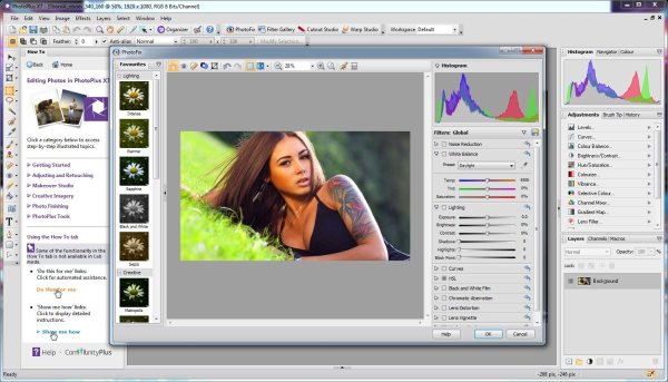 Serif PhotoPlus - профессиональный инструмент для редактирования цифровых фотографий, который позволяет работать с фотографиями и другими графическими файлами на профессиональной основе и поможет без проблем откорректировать фото и улучшить их качество, уменьшить или увеличить размер, отрегулировать яркость, контрастность, цветовую насыщенность ваших фотографий и многое другое.