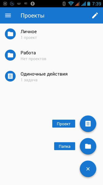 - Проекты и Контексты, основанные на методологии GTD и дополненные возможностью группировки по папкам.