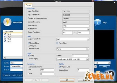 В сравнении с другими DVD программами конвертирования, данная программа имеет больше настроек, которые вы можете подстроить под себя, как например преобразование DVD по заданному пользователем размеру, делить исходные файлы, чтобы подогнать под размер CD-R, преобразовывать любой сегмент DVD, выбрать исходные субтитры и аудио песни и т.д.