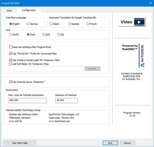 - Print2CAD Features English, German, Spanish, Italian and French Interfaces.