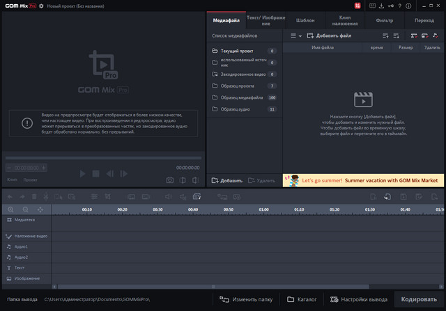 GOM Mix Pro - универсальный видеоредактор, который позволяет комбинировать различные видеоклипы и аудиофайлы, текст и изображения для создания захватывающих видео.