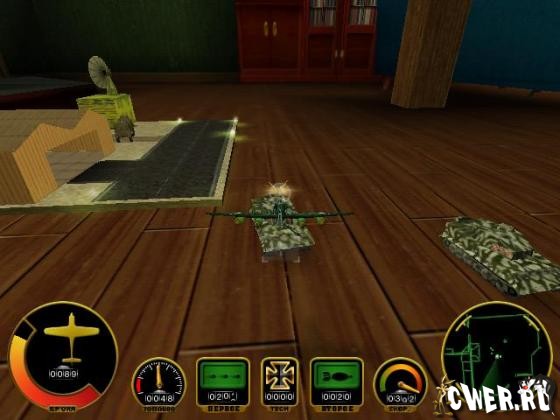 Эта игра – моделирование Второй мировой войны в воздухе в пределах отдельно взятого дома (!!!!!!!!!!) с использованием самолётов и прочей техники соответствующих размеров. Где-то что-то было написано про сюжет: будто бы нечто вдохнуло жизнь в модели, и теперь, когда в огромном доме никого нет, начинается нешуточная война, под потолком летают самолёты, в ванне плавают подводные лодки, а по полу ездят и стреляют танки. Без комментариев.