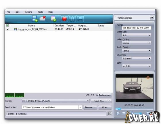Xilisoft MP4 Converter - мощная утилита для конвертирования в MP4, способная конвертировать популярные видео форматы, такие как AVI, MPEG, DivX, MOV, RM, WMV, 3GP, VOB, VCD, DV в MP4 (MPEG4), Xvid, и конвертировать аудио в MP3, AAC, M4A просто и быстро с отличным качеством.