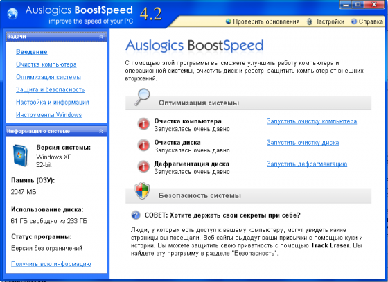 Обновилась Auslogics BoostSpeed. Программа оптимизирует компьютерную память, ускоряет загрузку Windows, повышает быстродействие Microsoft Office, The Bat, FireFox, Opera, чистит реестр и диск компьютера. После дефрагментации реестра BoostSpeed, скорость компьютера возрастет за счет уменьшения фрагментации файлов реестра, уменьшения их размера, а также благодаря устранению ошибок в реестре. Помимо этого BoostSpeed предлагает мощные возможности очистки реестра и диска, что в свою очередь позволит вашему компьютеру работать более быстро и эффективно.