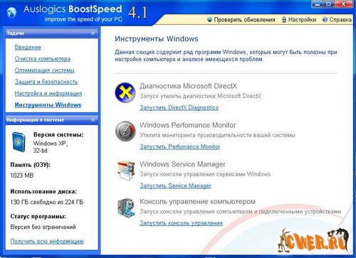 Набор из более чем 15 обслуживающих компонентов, с помощью которых можно оградить систему компьютера от ошибок. Программа оптимизирует работоспособность системы и удалять ненужные файлы. Вы можете находить и удалять неверные входы системного реестра, удалять прикладную и сетевую историю (поддержка программ через плагины), управлять вашим кукисами и множеством других функций. В менеджере автозагрузки можно видеть, какие программы запускаются автоматически с загрузкой системы и произвольно отключать выбранные элементы. Утилита поможет найти одинаковые файлы и удалить несуществующие ярлыки. Другие особенности включают безопасное удаление файлов, анализ дискового пространства, средство поиска пустых папок, деинсталляция программ и т.д.