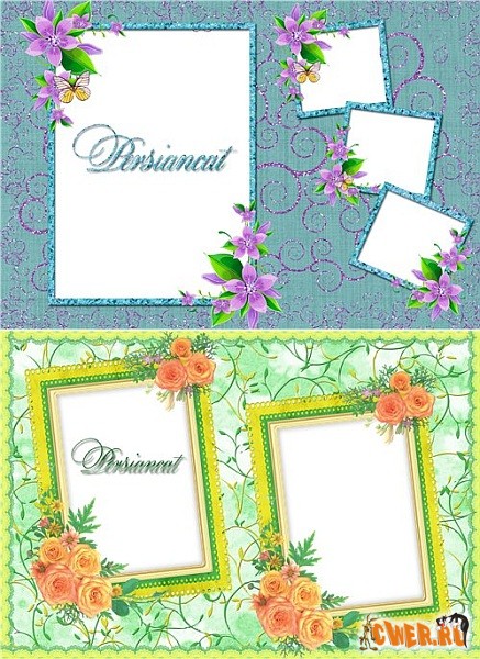 Две очень красивых рамки для фотомонтажа, украшенных букетами цветов.