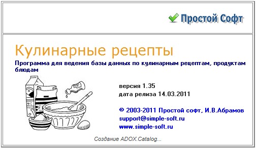Программа "Кулинарные рецепты" предназначена для ведения базы данных кулинарных рецептов, учета продуктов, составления и калькуляции блюд, расчета цен и других целей. Программа содержит более 12000 рецептов и описания приготовления блюд из любых продуктов.