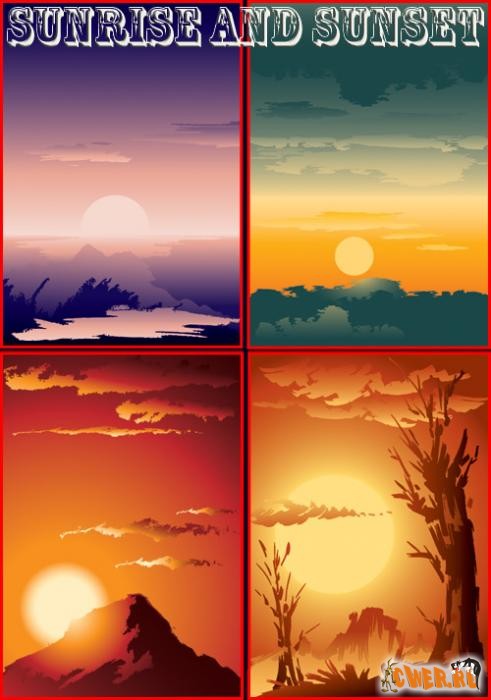 Рассвет и закат - векторная графика для Illustrator и Photoshop - 1 файл формата AI + 4 файла формата EPS + превью в jpg