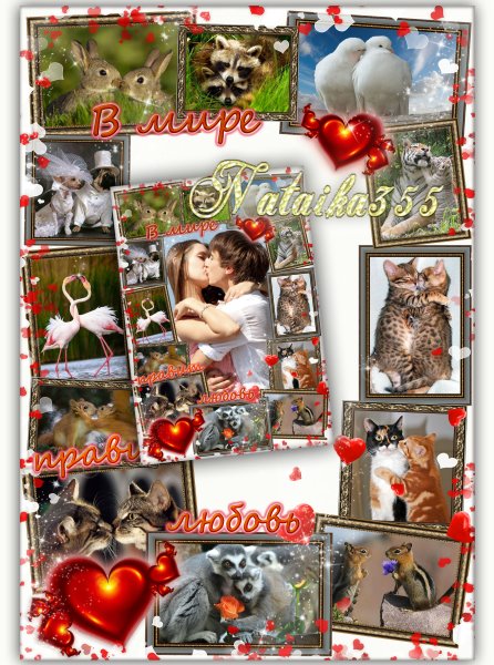 Многослойная фоторамка с влюбленными парочками, все элементы на отдельных слоях.