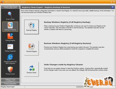 Registry Clean Expert - программа для сканирования реестра на предмет неправильной или устаревшей информации. Благодаря изменению таких данных в реестре система начинает работать быстрее и без ошибок. Программа имеет опцию резервного копирования и восстановления реестра на случай, если система даст сбой. Кроме этого, используя Registry Clean Expert, вы можете управлять приложениями, которые запускаются вместе с Windows и Internet Explorer.