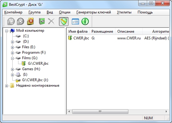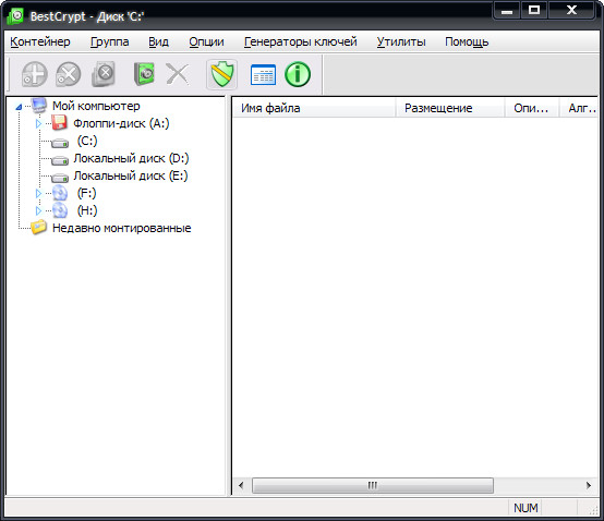 BestCrypt — программа для создания и поддержки зашифрованных виртуальных дисков. Программа позволяет шифровать данные несколькими алгоритмами шифрования, включая AES, Blowfish, Twofish, CAST и другими. Каждый алгоритм выполняется с максимально возможным размером ключа, определенного в спецификации алгоритма. Виртуальные диски появляются в системе как обычные локальные диски. Все системные и дисковые утилиты будут работать с ними обычным образом. Размер виртуального диска варьируется от нескольких мегабайт до сотен гигабайт, и вы можете создать любое количество виртуальных дисков. Зашифрованный файл-образ виртуального диска может быть скопирован на другие компьютеры.