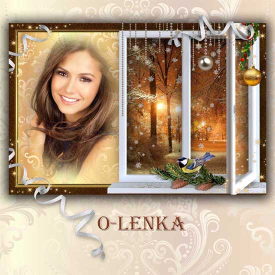 Новогодняя фоторамка со снежинками и еловыми ветками для украшения ваших фото.