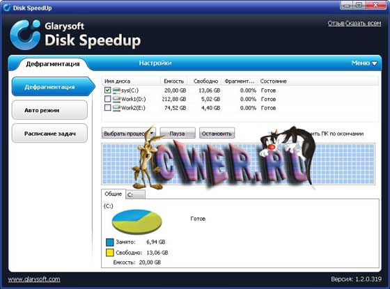 Glarysoft Disc SpeedUp это мощная и быстрая утилита для дефрагментации и оптимизации дисков в целях обеспечения максимальной производительности компьютера.