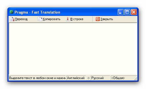 Pragma - многоязычная программа машинного перевода для перевода текстовых документов с одного языка на другой. Программа поддерживает семь языков: английский, русский, украинский, немецкий, латышский, польский и французский. Pragma выполняет перевод непосредственно в окне активного приложения или в отдельном окне быстрого перевода. С помощью программы можно переводить текстовую информацию, представленную в виде документов MS Word, Интернет страниц, почтовых сообщений, справок, а также содержимое различных текстовых окон. За счет автоматизации многих функций Pragma очень проста в использовании.