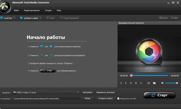 Aiseesoft Total Media Converter - универсальная программа, состоящая из граббера видео DVD, конвертера видео, аудио риппера из DVD и видеофайлов. Утилита поддерживает AVI, MPEG, WMV, MP4, RM, MOV, 3GP, VOB, FLV, HD-видеоформаты и другие популярные форматы видео и аудио. Программа также способна создавать файлы, совместимые с iPod, PSP, iPhone, BlackBerry, iPad и другими портативными устройствами. Программа поддерживает технологию NVIDIA CUDA, которая ускоряет кодирование/декодирование видео в 5 раз на тех компьютерах, процессор которых поддерживает CUDA. Приятный и удобный интерфейс позволит максимально комфортно конвертировать ваши файлы.