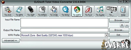 OJOsoft Total Video Converter - мощная программа, которая позволяет конвертировать любые видеофайлы в форматы 3gp (формат мобильных телефонов и наладонников), mp4, psp, iPod, swf, flv, DVD, VCD. Программа поддерживает чтение и проигрывание большого количества видео и аудио форматов (3gp, mp4, psp, iPod, swf, flv, DVD, VCD, mp3, ac3, ogg, wav, aac...), а также конвертирует их в популярные video/audio форматы и форматы мобильных телефонов и наладонников.