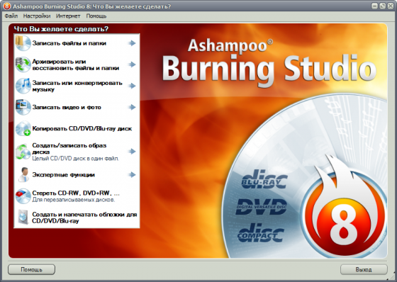 Ashampoo Burning Studio - пакет программ для записи CD-RW, DVD-RW, DVD+RW и Blu-ray дисков. Утилита позволяет создавать проекты и записывать CD/DVD (в том числе MP3-CD, VCD, S-VCD и Blu-ray).