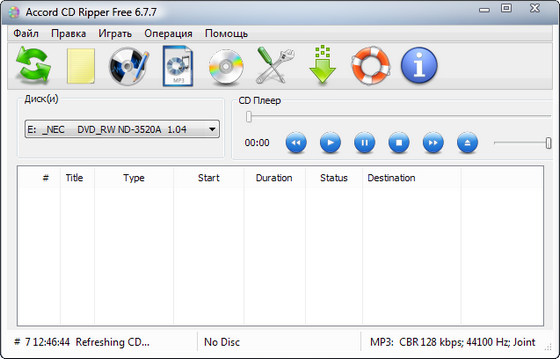 Accord CD Ripper - CD риппер, работающий с несколькими аудио форматами. Преобразовывает треки в wav и mp3 на довольно высокой скорости, которая еще увеличивается в многопроцессорных системах. Программа может искать информацию об альбомах как в локальных, так и в удаленных базах CDDB, эта информация затем может быть отредактирована. Запись мета-данных производится автоматически, есть встроенный CD плеер и многое, многое другое. Интерфейс программы предельно прост и дружественен.