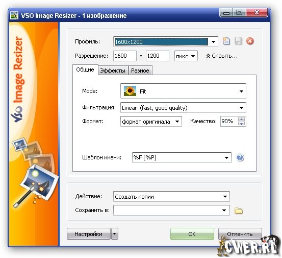 VSO Image Resizer - программа для изменения размеров цифровых картинок и изображений в различных графических форматах (на данный момент поддерживается работа с файлами JPEG, GIF, BMP, TIFF, CR2, NEF и т.д.). Также в утилите имеются возможности для компрессии файлов, конвертирования из одного формата в другой, экспорта, наложения прозрачных прозрачных и управления картинками. VSO Image Resizer интегрируется в оболочку Windows, может работать в пакетном режиме, обладает расширенными опциями настройки для продвинутых пользователей.