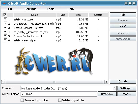 Xilisoft Audio Converter - инструмент, способный решить почти любые проблемы в области конвертирования аудиофайлов. Поддерживаются все популярные форматы, пакетная обработка и перенос информации из ID3-тегов, призванная избавить пользователя от утомительного переименования вручную. Также прилагаются возможность выдирания звуковой дорожки из видеозаписей и максимально упрощенный интерфейс.