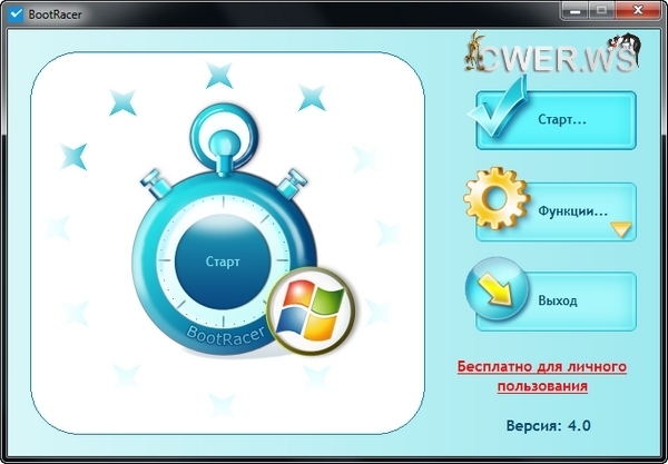 BootRacer — небольшая утилита, которая позволяет автоматически проверять скорость загрузки системы при каждом запуске компьютера. Определяет время до входа в систему (момент когда пользователя просят ввести пароль) и полное время загрузки. Результаты измерений записывает в собственный журнал событий. Проста в установке и использовании.