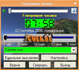 Программа показывает и говорит время, длительность работы Windows (показания записываются в журнал) и синхронизирует время с сервером в Интернет. Есть возможность заменять стандартные часы в трее, изменять их внешний вид и отображаемый текст. Имеется планировщик и множество настроек.