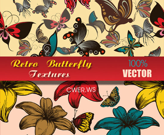 Вашему вниманию представлены векторные текстуры с бабочками в стиле ретро.