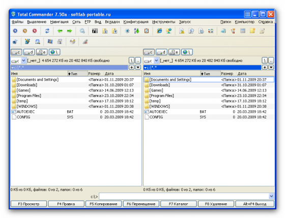 Total Commander - популярный файловый менеджер с практически всеми необходимыми для таких программ функциями. Кроме всех функциональностей, характерных для файловых менеджеров, в Total Commander встроены очень удобные просмотрщики для мультимедиа и графических файлов, распаковщики ZIP, ARJ, LZH, RAR, UC2, TAR, GZ, CAB, ACE и дополнительные dll для других архивных файлов; встроенный ftp-клиент - вообще просто прелесть: можно скачивать/закачивать файлы в несколько потоков, есть докачка, поддержка www-прокси при работе с ftp и есть даже такая функция, как подключение-скачивание-отключение в заданное время к заданному ftp. Не будут лишними и такие функции, как UUE/MIME/XXE кодирование/декодирование и разрезка/склейка длинных файлов, а также множество других функций, крайне необходимых для работы с файлами.