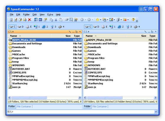SpeedCommander - файловый менеджер с многочисленными, в том числе и уникальными, возможностями по работе с файлами. Из не совсем обычных функций имеет смысл обратить внимание на мощную систему шифрования файлов (файлы сжимаются - внутренняя поддержка ARJ, ZIP, LHA, RAR, CAB, ACE, GZIP, TAR и UUE, затем шифруются по стойкому алгоритму DES, а потом ещё и их названия можно защитить паролем). Кроме этой довольно редко встречаемой опции, в SpeedCommander имеется встроенная поддержка просмотра около восьми десятков графических и текстовых форматов; есть полнофункциональный текстовый редактор с подсветкой синтаксиса и не менее полнофункциональный ftp-клиент.