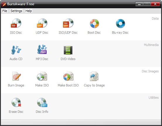 BurnAware Free - относительно небольшая, бесплатная и простая в использовании программа для записи информации и музыкальных композиций на CD, DVD, Blu-Ray и HD-DVD диски, которая пригодится как опытным пользователям, так и новичкам. BurnAware поддерживает работу со всеми типа оптических дисков (включая CD-R/RW, DVD-R/RW, DVD+R/RW, BD-R/RE, HD-DVD-R/RW и DVD-RAM) и аппаратными устройствами записи. Утилита поддерживает создание образов, способна писать мультисессионные диски, имеет опцию проверки записанного содержимого, работает под операционными системами Windows 98/ME/NT/2000/XP/Vista (32/64-bits).