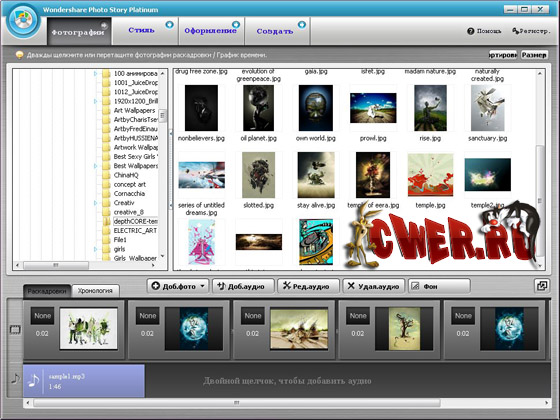 Photo Story Platinum - удобная и качественная программа для создания эффектного слайдшоу со звуком из ваших фотографий. Абсолютная простота в использовании и наличие большого набора функций, красивый и удобный интерфейс выгодно отличают её от программ подобного рода. Имеет около 100 восхитительных тематических шаблона, 12 музыкальный фоновых треков, с возможностью добавлять собственные, несколько анимированных стилей для начала и конца показа, внесение в проект текста и графики, встроенный фоторедактор и оптимизатор кадров, подбор скорости перелистывания и пр. Позволяет сохранение в нескольких цифровых форматах и имеет возможность записи результата на DVD.