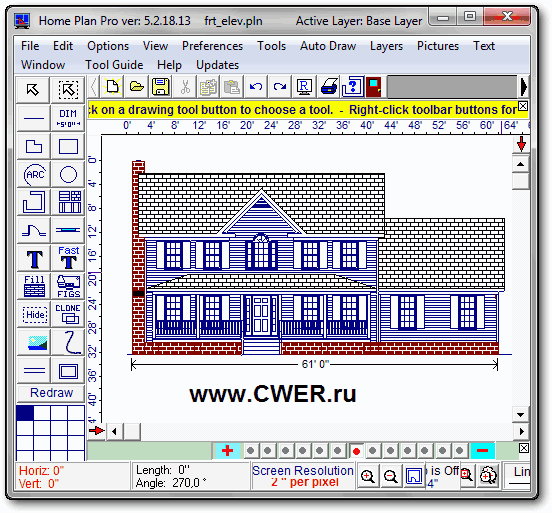 Home Plan Pro - отличная программа для быстрого и легкого черчения плана помещений, мест и архитектурного дизайна. Программа предлагает множество различных инструментов, которые помогут вам начертить план вашего дома, квартиры, жилых помещений и т.д. Пользователю предлагаются такие инструменты, как линии, овалы, прямоугольники, черчение стен, дверей, окон, арок, кирпичных стен, вставка изображений, текста, дублирование предыдущего элемента и многое другое.
