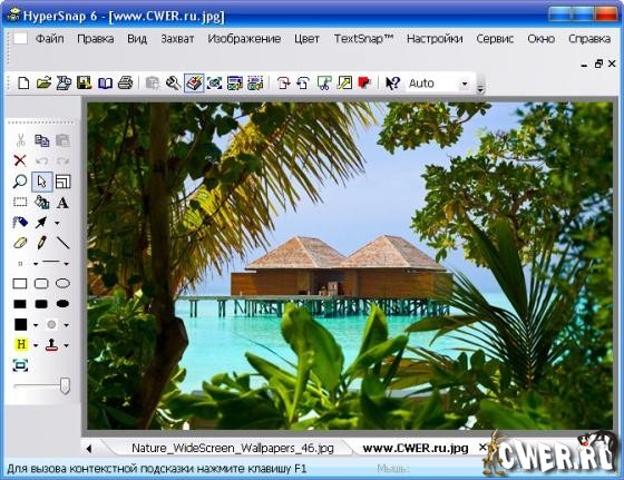 HyperSnap - один из лучших инструментов для захвата изображения, позволяющий скопировать не только окна стандартных программ, но и игры, скринсейверы и видеофильмы. С помощью данной программы вы сможете сделать скриншот всего экрана монитора, его части, окна определенной программы (вместе с курсором или без), игр и скринсейверов (работающих в режимах DirectX и 3Dfx Glide), видео- и DVD-фильмов, и сохранить его в одном из более, чем 20-и форматов, включая BMP, GIF и JPEG. Среди других возможностей программы - редактирование GIF- и JPEG- файлов, создание скриншотов в автоматическом режиме через заданные промежутки времени, предварительный просмотр, распечатка изображений и прочее. Программа легко конфигурируется и имеет удобный интерфейс + русификатор позволит вам полностью насладится программой и оценить ее возможности.