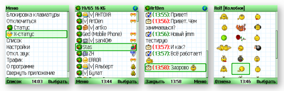 Jimm - ICQ-пейджер для мобильников с огромным количеством возможностей и настроек, с анимированными смайлами и возможностью создавать новый аккаунт. Все экраны