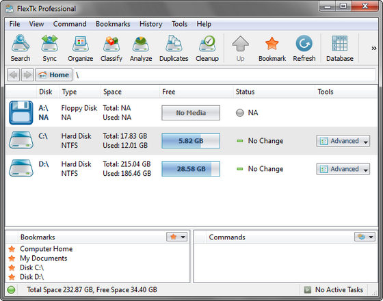 FlexTk - это объединенный в одной оболочке набор инструментов для управления файлами. Программа позволяет классифицировать и сортировать файлы по категориям, копировать и перемещать файлы по точкам и закладкам, анализировать загрузку площади диска, идентифицировать "горячие точки" устройств хранения информации, осуществлять поиск и удаление дубликатов файлов, генерацию сигнатур для файлов и проверку целостности файлов и папок, освобождать дисковое пространство и многое другое.